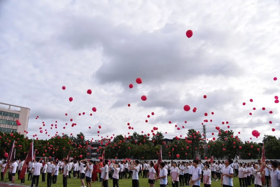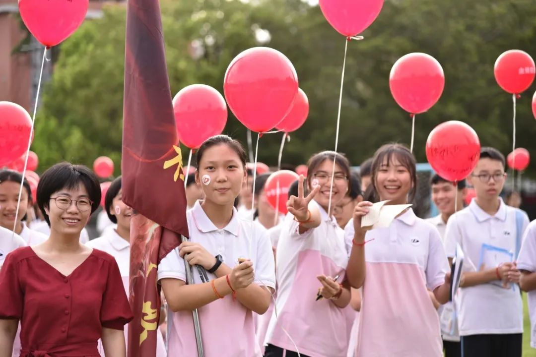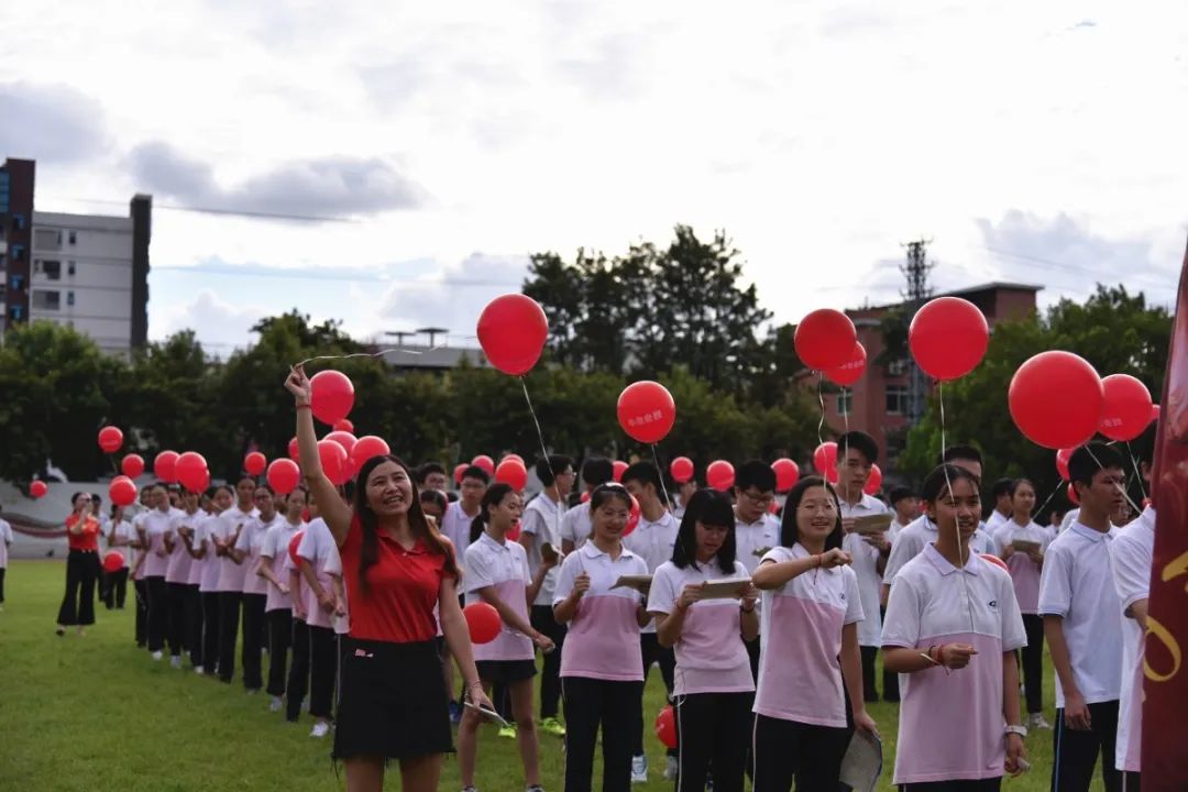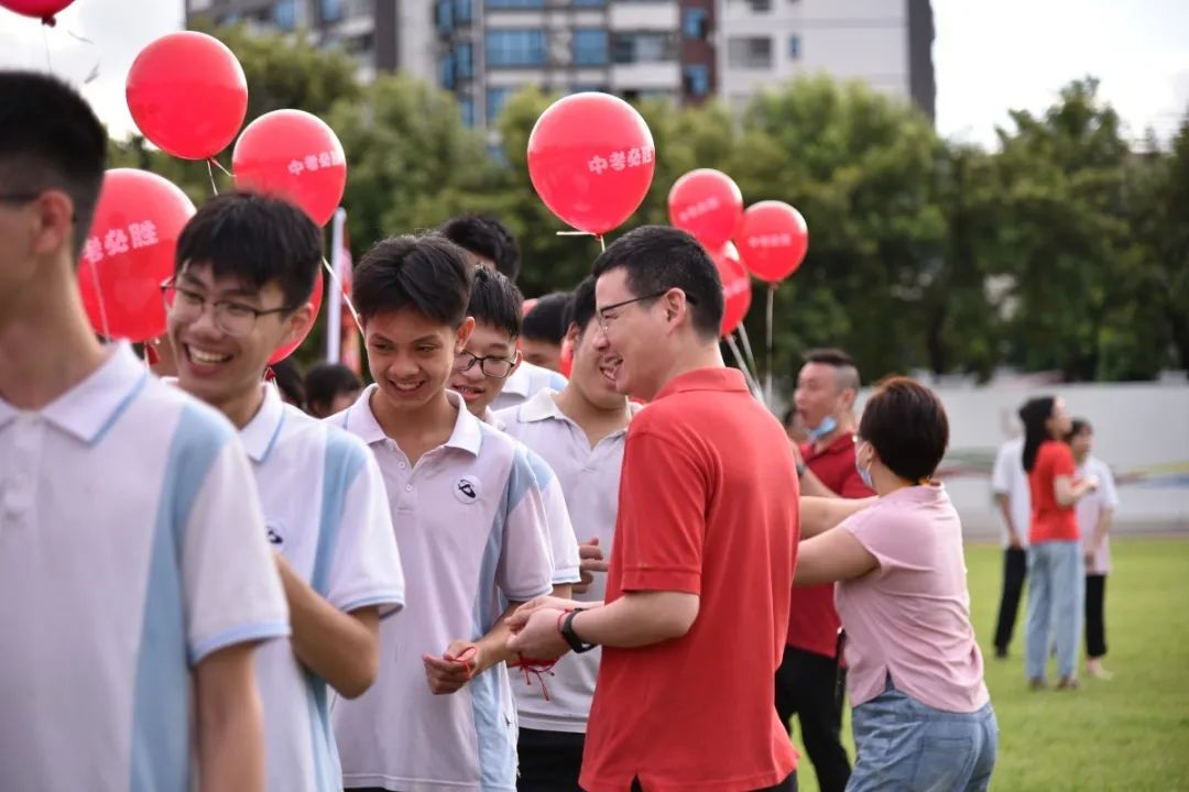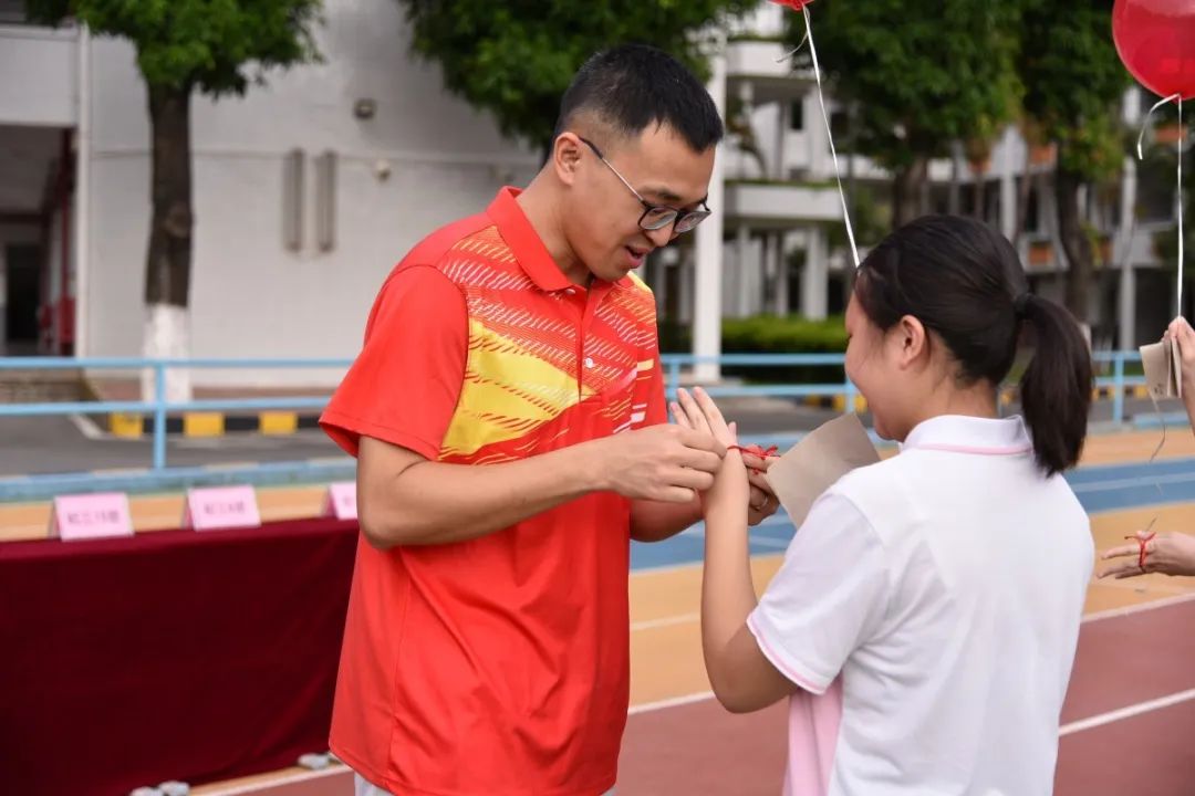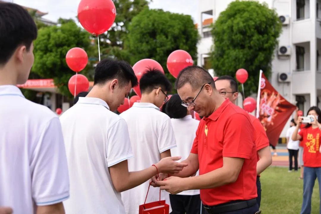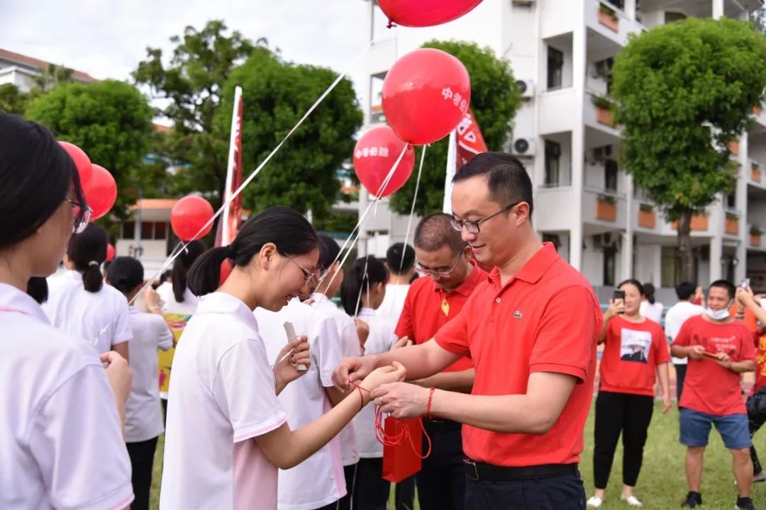 三年來,正因為有各位家長的支持與配合,家校形成合力,同學們才能健康快樂成長。各班家長代表手持“金榜題名”氣球進場,為每位同學送上最美好的祝福,各任課老師為同學們戴上勝利紅繩,一起放飛夢想!