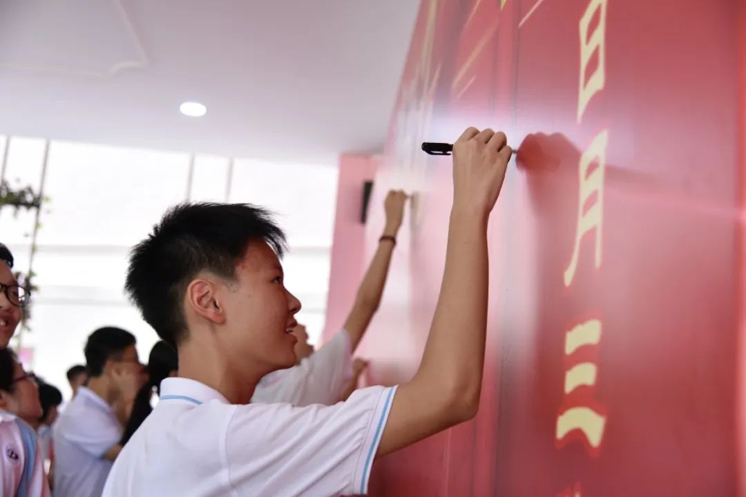 儀式的最后是全體考生在簽名墻上留中考必勝的錚錚宣言。
