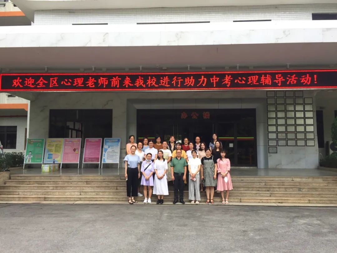 6月22日下午,區教育發展中心辦公室主任、心理教育教研員陳萍帶隊到我校開展助力中考個體心理輔導活動。來自全區的18位心理老師共同為我校初三學子筑起守護理想的心理防線,給學生提供心理減負的技巧,分析造成心理壓力的原因,緩解學生的考前壓力。