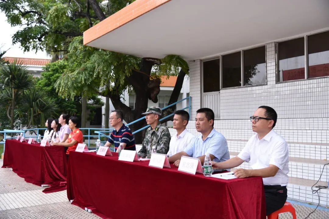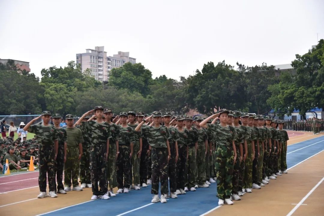 8月28日下午,順德一中外國(guó)語(yǔ)學(xué)校在運(yùn)動(dòng)場(chǎng)隆重舉行2020級(jí)初一新生社會(huì)實(shí)踐結(jié)營(yíng)儀式。廣東省全民國(guó)防教育中心培訓(xùn)部部長(zhǎng)王瀟珂、廣州市越秀區(qū)中小學(xué)生綜合實(shí)踐活動(dòng)教育基地后勤處主任黎學(xué)記、 順德一中外國(guó)語(yǔ)學(xué)校執(zhí)行校長(zhǎng)曾祥明、順德一中外國(guó)語(yǔ)學(xué)校黨總支副書(shū)記劉婷等領(lǐng)導(dǎo)出席了結(jié)營(yíng)儀式。