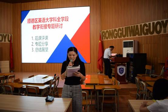 為了總結上學年英語學科大教研工作經驗,研討并部署新學期教研工作,積極推進區域聯合教研,形成學科內學段銜接的大教研機制和各級各類教研合力,9月8日下午,本學期英語學科大教研工作會議于容桂外國語學校召開,順德區教育發展中心教研員田湘軍、杜曉曦、許莎莎,容外副校長周劍山,以及來自不同鎮街和學校的英語科組長,各年級備課組長參加了會議。會議由容桂外國語學校英語科組長楊通蘭主持。