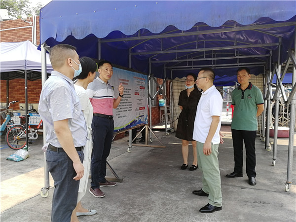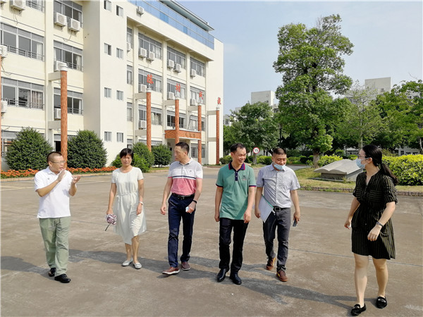 為做好校園防疫工作,迎接新學期的到來,8月29日上午,順德區(qū)教育局副局長羅勁柏一行3人蒞臨陳村職校檢查指導2020年秋季學期開學疫情防控準備工作。副校長司徒葵東以及部分行政全程陪同參加此次檢查。