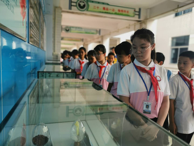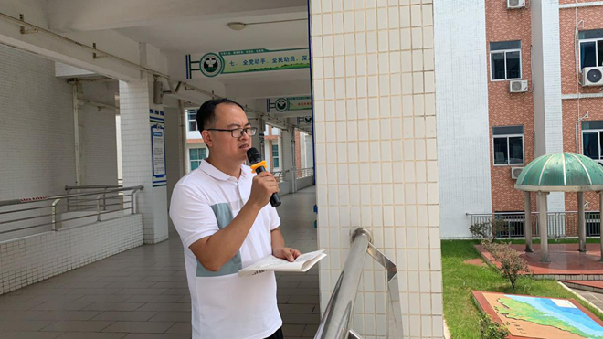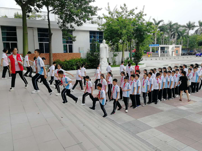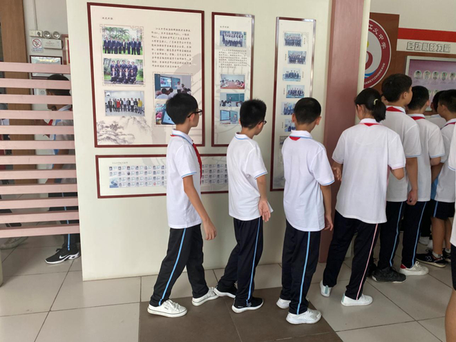 (初二的班長帶領各班“傳經送寶”,參觀校園)