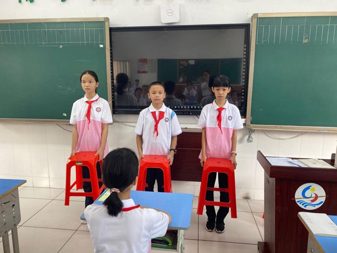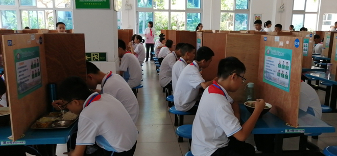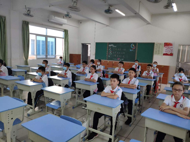 開學典禮結束后,便回到教室開始課本的分發,看著嶄新的散發著書香的課本,我們愛不釋手,不由自主地翻起課文來看。領到課本后,我們跟著老師學習飯堂就餐指引,清晰的就餐指引,讓我們很快熟悉飯堂吃飯的座位和流程。