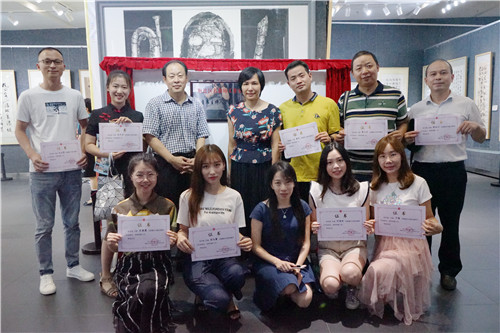 現場,順德區教育局副局長冼彌冬、原廣州美院版畫系主任、廣州美術學院教授李全民給工作室學員頒發學員證書。相信工作室各位成員必定會不忘初心,砥礪前行,努力發展版畫藝術。