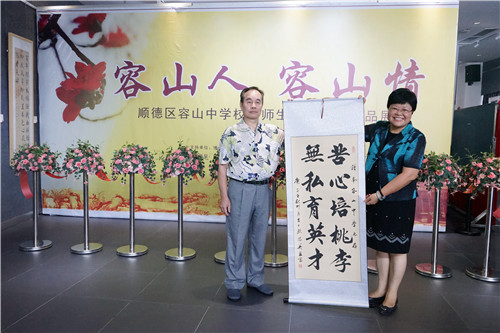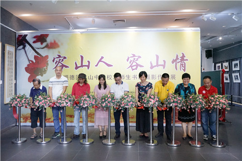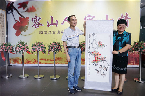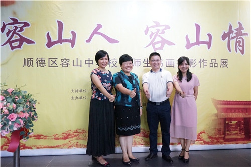 容桂街道黨工委副書記、辦事處主任歐勝軍、容桂街道黨工委副書記劉英華、順德區教育局副局長冼彌冬、容桂街道宣傳文體旅游辦公室主任陳奮發、原廣州美院版畫系主任、廣州美術學院教授李全民、容山中學校友聯誼會榮譽會長李任賢、容山中學校友聯誼會副會長譚耀基等領導、校友嘉賓出席了開幕式并為書畫展作剪彩儀式。