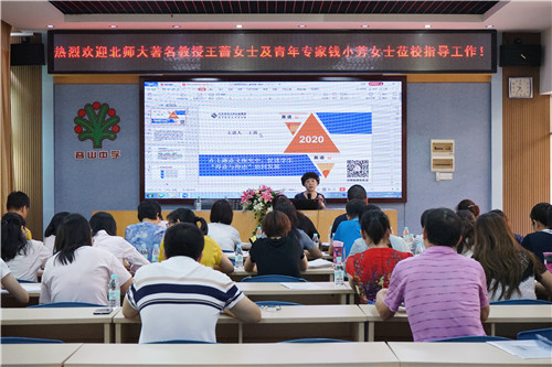 9月25日,北京師范大學著名教授、學術帶頭人、北京師范大學外文學院外語教育與教師教育研究所所長王薔女士及外語教育與外語教師教育青年專家錢小芳教授受邀來我校指導英語教育教學工作。王教授就如何有效實施北京師范大學出版的《高中英語》新教材教學、落實學科素養的培育、實現從知識為核心的課堂教學向以素養為核心的課堂教學轉變等方面以全新視角對英語科組老師進行了系統的指導。