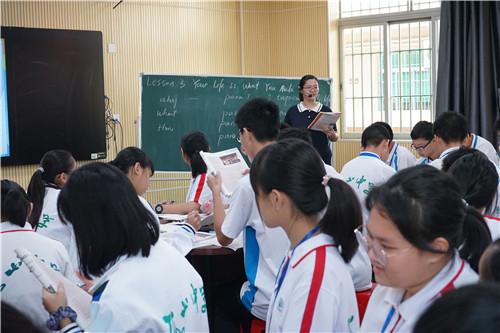 在課例展示中,英語科組萬娜青老師帶領高一(6)班的學生一起學習了北師大新版教材必修一第一單元的第三課Your Life Is What You Make It。萬老師的課堂以小組合作形式,充分運用新課標理念,層層推進,幫助學生解讀文本,讓學生在語篇中既收獲了語言知識,又受到了正確價值觀的熏陶。