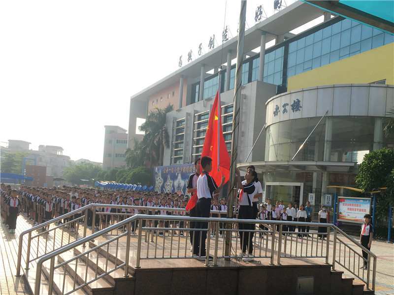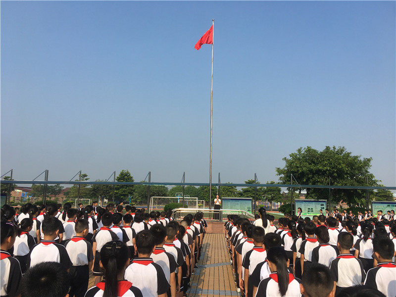 由于場地范圍有限,但是同學們參加典禮的熱情無限。只見同學們一個個揚著笑臉,有序地到指定地點站好,靜待典禮開始,整個會場寂靜安然,秩序良好。典禮由麥國才主任主持,首先是升旗儀式,五星紅旗冉冉升起,整齊的隊禮,莊嚴的儀式,傳達出全體師生對祖國的尊重與熱愛!典禮在莊嚴的國歌聲中拉開了序幕。