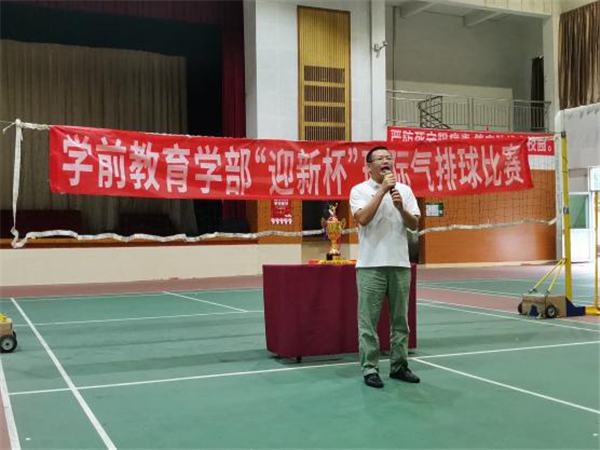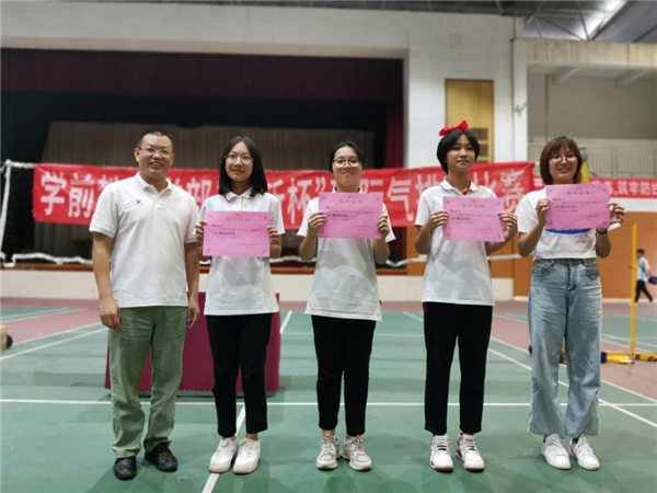 最終學(xué)前194班勇奪本次比賽的冠軍,學(xué)前183班、學(xué)前19大專分別獲亞軍和季軍。學(xué)前202班、學(xué)前203班、學(xué)前194班、學(xué)前19大專班獲“最佳啦啦隊(duì)”稱號。司徒葵東副校長、鐘全榮主任、李潔紅部長分別為獲獎班級進(jìn)行頒獎。