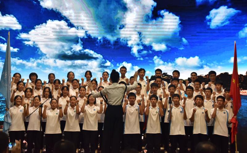 9月29日晚,在均安鎮(zhèn)團(tuán)委支持下,均安中學(xué)舉行高一紅歌比賽。高一年級(jí)師生齊聚一堂,將君玉精神、將對祖國的熱愛與感激,融入歌聲當(dāng)中,展現(xiàn)君玉把頌歌獻(xiàn)給祖國華誕,獻(xiàn)給人民,獻(xiàn)給親愛的黨。