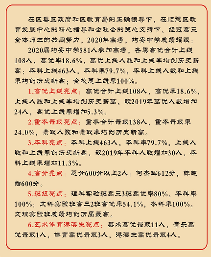 2021屆高三年級學子們將不辱使命,明年的六月你們定會在高考中旗開得勝,金榜題名,創造均安中學的新輝煌!