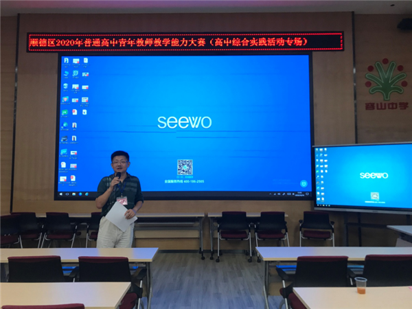 “模擬課堂教學(xué)“環(huán)節(jié), 順德區(qū)在模擬課堂教學(xué)環(huán)節(jié)中要求選手從自己設(shè)計(jì)的主題活動方案中,選取其中一個環(huán)節(jié)或片段,自行設(shè)計(jì)一節(jié)40分鐘的課堂教學(xué),并在無學(xué)生的環(huán)境下進(jìn)行20分鐘的模擬課堂教學(xué)展示和5分鐘答辯。