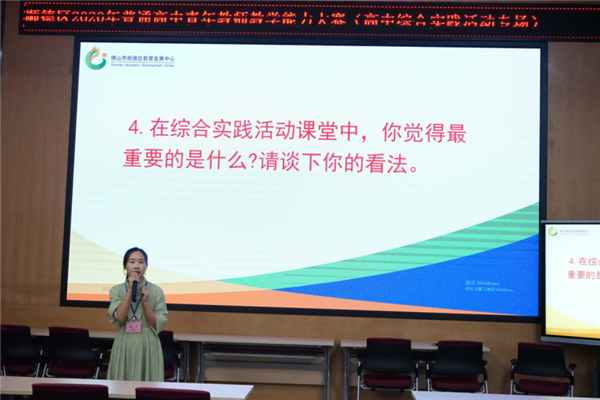 “即興演講”環(huán)節(jié),順德區(qū)給各位選手4分鐘的抽簽準(zhǔn)備, 5分鐘即興演講要求參賽選手現(xiàn)場抽取題目,隨后答辯2-3分鐘。我校胡華杰老師抽到“在綜合實(shí)踐活動課堂中,你覺得最要的是什么,請談?wù)勀愕目捶ā钡念}目, 根據(jù)題目,她覺得綜合實(shí)踐活動課程的實(shí)施,離不開學(xué)生主動用心的實(shí)踐和各種實(shí)際操作活動,突出學(xué)生主體,意味著把學(xué)生作為課程的主體,一切從學(xué)生的實(shí)際出發(fā),激情演講獲得了評委的一致好評。