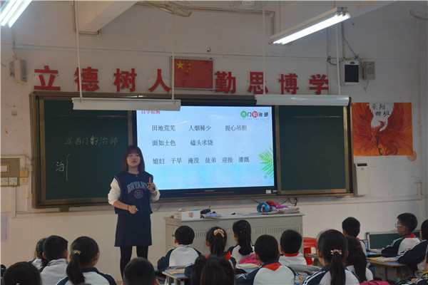 活動中,分別由仕版奮揚學校語文科6位青年教師各自展示一節匯報課,隨后由導師和語文科組的全體教師進行評課、議課活動。其中,梁綺云老師執教了《烏鴉喝水》一課、梁健欣老師執教了《王戎不取道旁李》一課、劉國英老師執教了《少年閏土》一課、張麗老師執教了《習作教學課》一課、劉思蔓老師執教了《西門豹治鄴》一課、鄭璇老師執教了《記敘文復習課》一課。全天的課程時間安排緊湊,導師們聽課評課也是馬不停蹄、密鑼緊鼓地進行著。