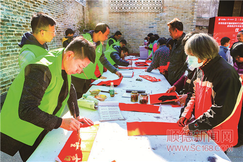 當天一大早,羊額月池何公祠就聚集了一批書法名家,即席揮毫為市民免費寫春聯。據悉,倫教組織書法名家為市民免費寫春聯活動已經延續多年,深受市民歡迎。今年活動繼續開展,1月2日至2月10日期間,倫教藝術文化協會、倫教街道書畫協會的一眾書法家(文化志愿者)將到各村居開展義務為民寫春聯送福活動。