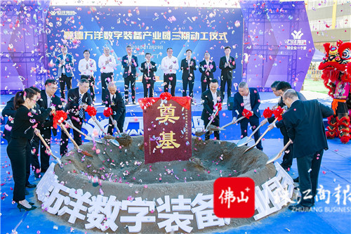 昨日,順德萬洋數字裝備產業園三期動工,圖為領導嘉賓為萬洋數字裝備產業園三期工程奠基。 /珠江商報記者朱德文攝