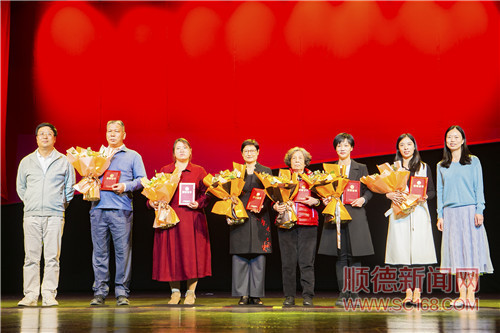 大良街道黨工委委員伍時(shí)駿、大良街道宣文體旅辦主任李翠芬分別為李洪偉(左二)、李定國(guó)(大門居委會(huì)工作人員代領(lǐng),左三)、蔡小瓊(左四)、邢詒貞(右四)、伍素華(右三)、譚杏映(右二)6位“鳳城凡星”頒獎(jiǎng)。