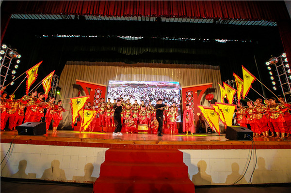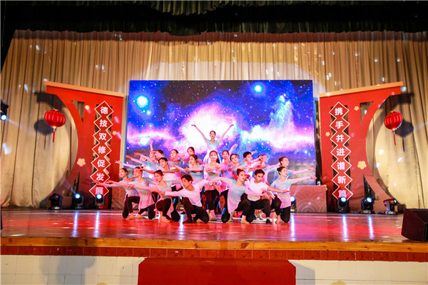 游園活動結束后,令人翹首以盼的年度文藝匯演開始了。一段熱力四射的舞蹈串燒開場舞和歡騰喜慶的歌曲《祝福你》,拉開文藝匯演的帷幕,迅速燃爆全場。