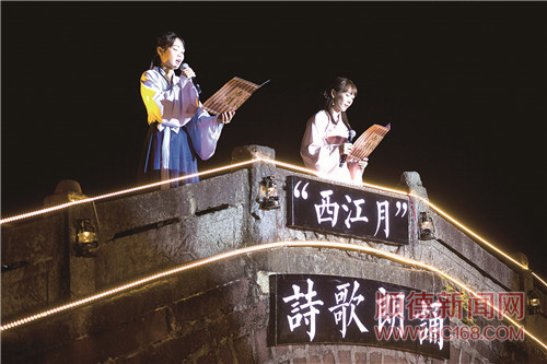 在見龍橋上舉辦詩歌朗誦會,伴著朗朗月色,一首首本土原創(chuàng)詩歌作品的朗誦,為古橋的夜增添了一股詩意;
