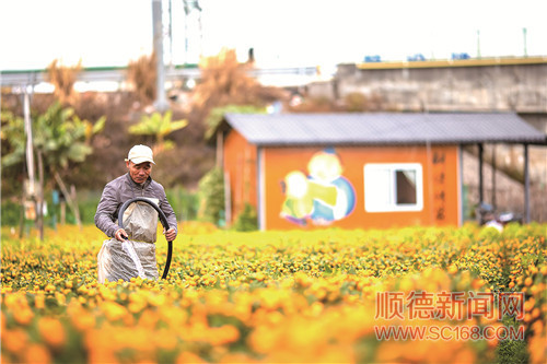 還有一個月就迎來2021年的春節。在陳村鎮仙涌村寒字路兩旁,連片桔田上的年桔已經“裝扮”好,一個個飽滿的金黃桔子掛滿枝頭,長勢喜人。早上10點多,桔農開始為它們澆水,讓它們時刻以最佳的狀態“迎客”。
