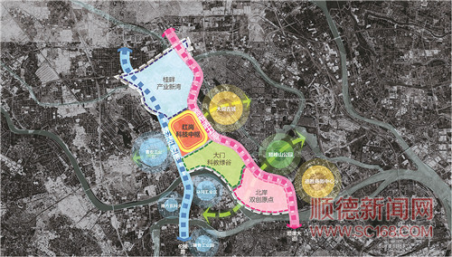 南北整合、東西鏈接,打造一心、兩帶、三區。