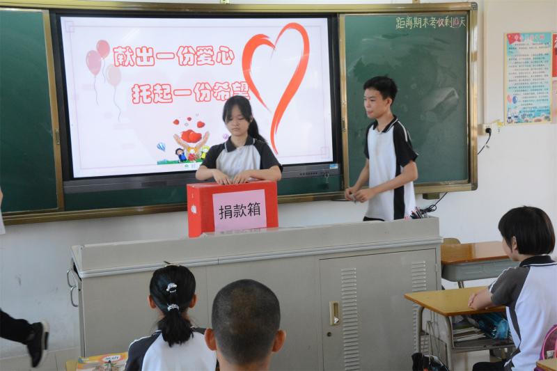 學生們有秩序地走向募捐箱,用雙手將早已準備好的愛心款放入募捐箱,每一份帶著溫度的小愛心在一方小小的募捐箱里匯聚成一顆大愛心。