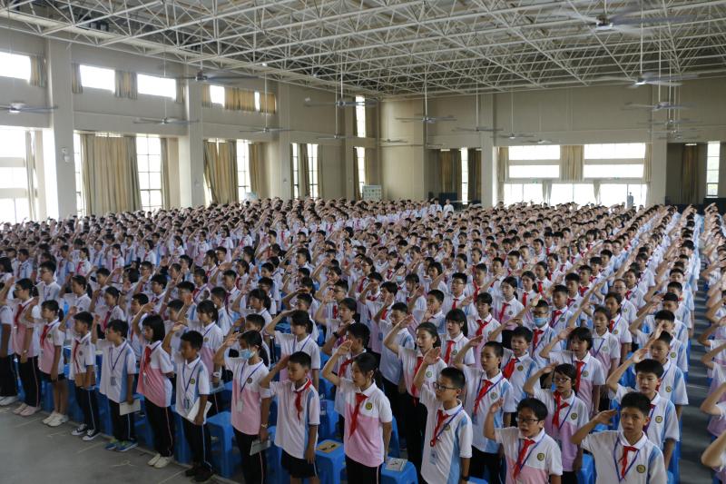 2020年8月31號下午,文田中學2020級800多名初一新生齊聚禮堂。鮮艷的紅領巾整齊劃一,他們的主人坐姿端正,正以飽滿的精神和高度的熱情進入初一級新生大會。