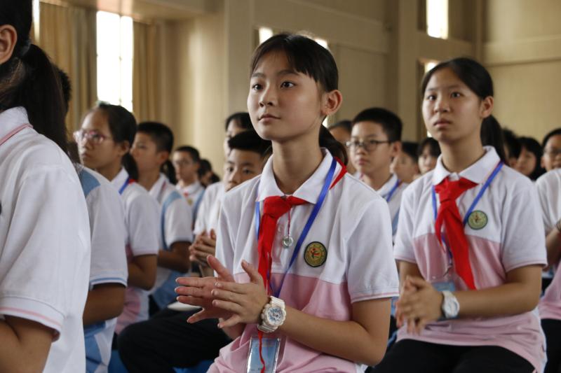 2020年8月31號下午,文田中學2020級800多名初一新生齊聚禮堂。鮮艷的紅領巾整齊劃一,他們的主人坐姿端正,正以飽滿的精神和高度的熱情進入初一級新生大會。