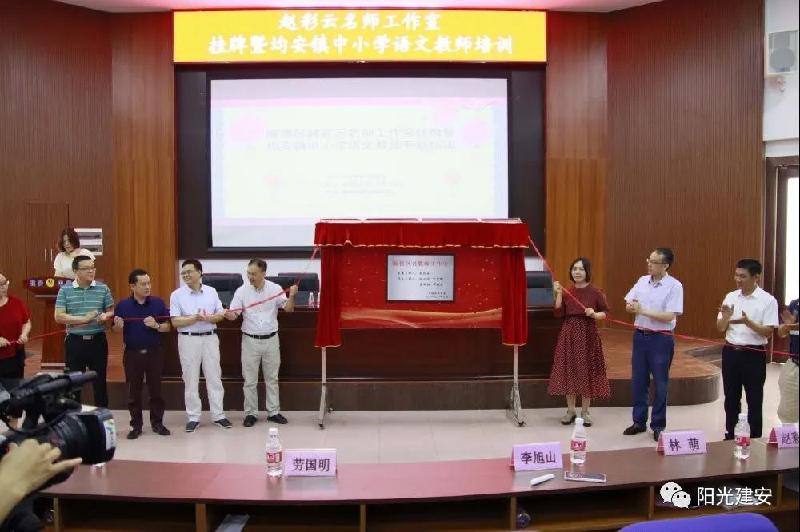 隨后,專家、領導與工作室主要成員等一起為工作室舉行了揭牌儀式,預示著均安鎮名師培養工作又站上了一個新的臺階。