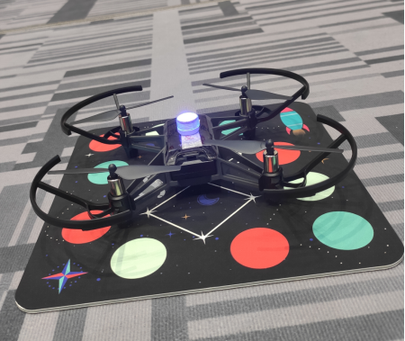 這次人機(jī)協(xié)同表演,利用8架大疆Tello EDU 無人機(jī)編隊(duì),運(yùn)用其視覺和深度學(xué)習(xí)等前沿科技,控制Tell EDU,實(shí)現(xiàn)物體識別,目標(biāo)跟蹤,三維重建等AI應(yīng)用。通過編寫程序,控制著8臺Tello EDU在”挑戰(zhàn)卡”上編隊(duì)飛行,做出精彩的表演,用代碼指揮飛行器配合同學(xué)們做出漂亮動作。