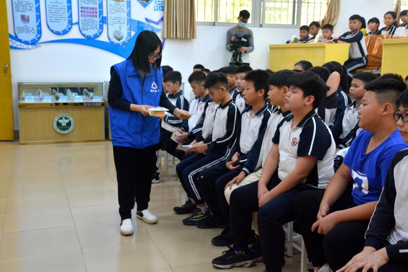 隨后禁毒社工為學(xué)生展示毒品模具并派發(fā)禁毒宣傳小冊子。