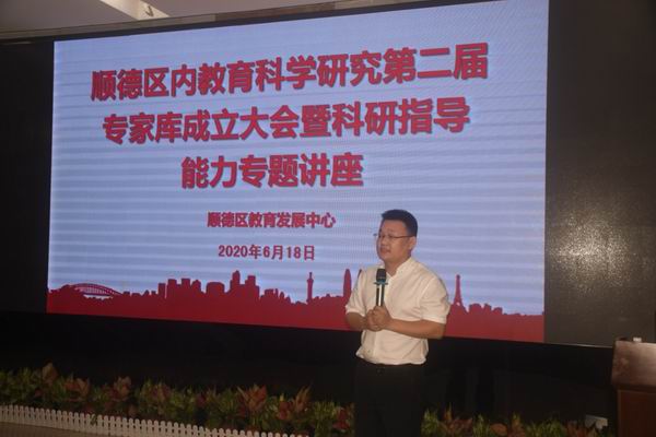 綠樹濃蔭夏日長,六月的盛夏點燃了順德區教育工作者的科研熱情。2020年6月18日上午,順德區內教育科學研究第二屆專家庫成立大會暨科研指導能力專題講座在區教育發展中心順利舉辦,廣東省教育研究院基礎教育研究室副主任黃志紅博士蒞臨現場指導,全區165位新組建的教育科研專家庫成員參與并聆聽了科研專題講座,活動由區教育發展中心教科室副主任李遠良主持。