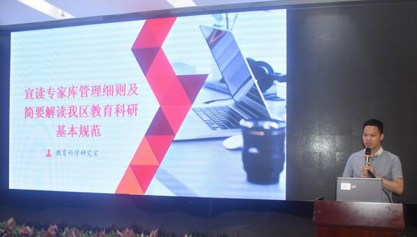 隨后,區教育發展中心教科室副主任黃書剛宣讀了專家庫管理細則及簡要解讀我區教育科研基本規范和流程。