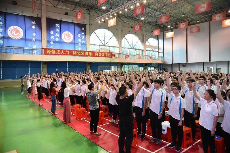 2020年8月16日下午4:00,順德華僑中學在體育館開展2020屆高三高考總動員勵志演講會。活動邀請到著名青年勵志演說家楊青松先生,從培養習慣、感恩師長、自信拼搏三方面進行演說,為2020屆的僑中高三同學加油鼓勁,助力同學們攜書劍路不茫,攜手乘帆遠航。