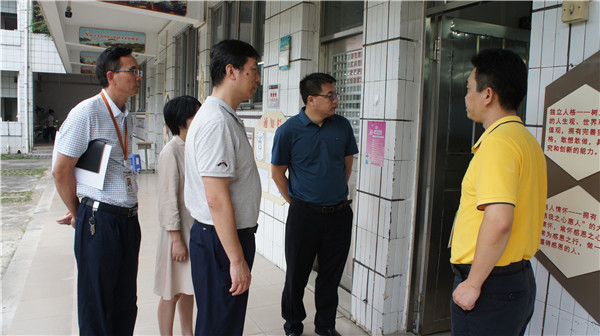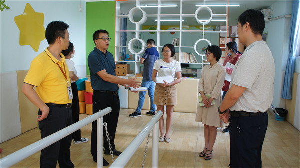 9月17日下午,順德區特殊教育落實工作督查組一行6人,在順德區特殊教育支援服務中心主任、順德區啟智學校校長申承林的帶領下,與陳村鎮教育局李麗冰老師一起,蒞臨陳惠南紀念中學開展特殊教育工作調研督查。