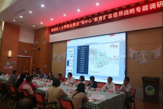 百年大計,教育為本。9月17日,順德區人大常委會推進的“強中心”教育擴容提質戰略專題調研會在順德區鳳翔小學舉行。由區人大常委會副主任、市教育科學研究所所長舒悅,區人大常委會委員、教科文衛華僑工委主任何允唐,區教育局副局長羅勁柏帶領的區人大及區屬部分領導組成的調研組成員來到大良街道,在大良街道人大工委主任陳金團,大良街道黨工委委員伍時駿,大良教育辦主任李翠芬等領導的陪同下,通過實地考察調研、聽取匯報等方式,了解大良街道教育擴容提質工作的部署與落實情況,積極推進順德區“強中心”教育戰略發展。