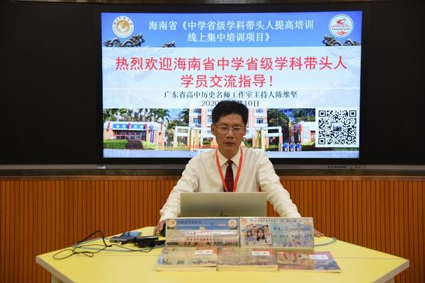 2020年10月10日上午9時,陳維堅老師受邀參與由海南師范大學繼續教育學院主辦、全國中小學教師繼續教育網承辦的中學省級學科帶頭人提高培訓項目。參加本次線上培訓項目的教師均是海南省2017―2021年度中學省級學科帶頭人,其中初中學科帶頭人22人,高中學科帶頭人47人。為幫助學員明確“凝練個人教學主張對專業成長的必要性”,廣東省高中歷史陳維堅名師工作室主持人、順德區陳維堅特級教師工作室主持人――陳維堅老師在廣東省高中歷史陳維堅名師工作室以直播的形式作了以《名師教學主張自主凝練》為題的專題講座。該講座為此次培訓的首場專家講座。在兩個半小時的講座中,陳維堅老師傾囊相授為參培學員帶來了實用且有益的教育教學建議,為廣大參培學員提供了今后發展的思路和方向,也為本次線上培訓項目打下了一個良好的基礎。