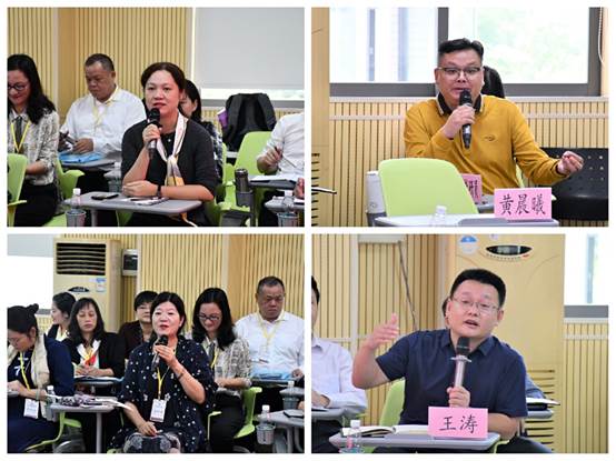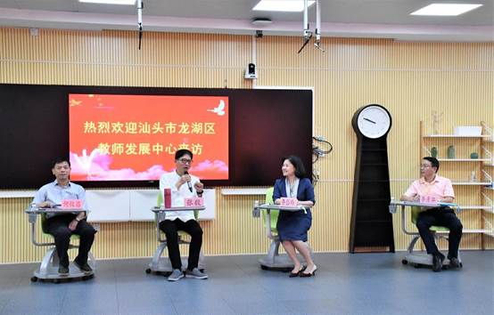 在交流互動環(huán)節(jié),汕頭市龍湖區(qū)研訓團隊就教研工作的有效開展、質(zhì)量監(jiān)測的系統(tǒng)運作、智慧課堂的實際運用等問題進行提問,雙方人員積極互動,交流經(jīng)驗。