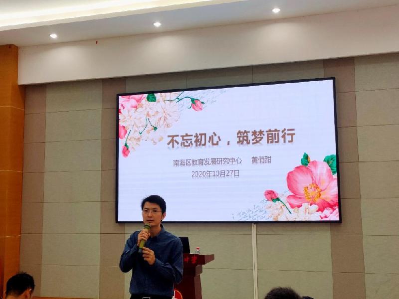 金秋送爽,順德教壇顯生機;名師引領,鳳城后浪欲爭先。2020年10月27日,順德區第七批骨干教師在做好了各項防疫措施的前提下,齊聚李兆基中學,開展了為期一天的集中學習和研討。活動的開始,順德區教育局劉進華科長簡要總結了本批骨干教師兩年半的培訓和成長,并為此次集中培訓表達了殷切的期待。