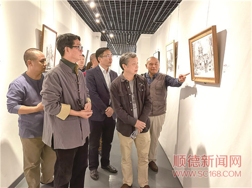 順德美術家們觀摩研討本次展覽展出的素描精品。