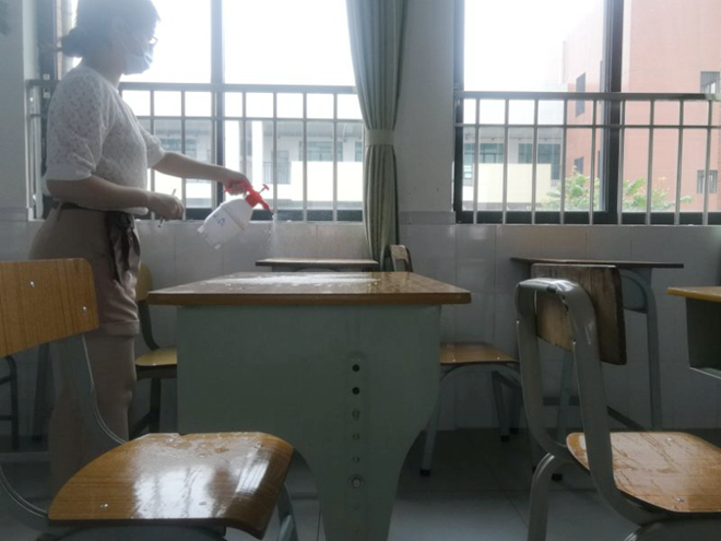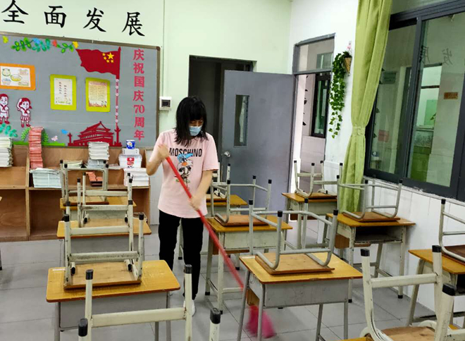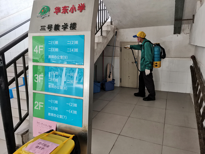 此外,學(xué)校還組織后勤人員每天進行晨掃、下午掃和消毒,加大校內(nèi)清掃力度,認真落實清掃保潔制度,及時清掃辦公樓道、廁所,及時清理垃圾污物,保證環(huán)境衛(wèi)生整潔。還組織保安員不定期噴灑消毒液,防止“四害”傳媒疾病的發(fā)生和流行,確保師生身體健康。