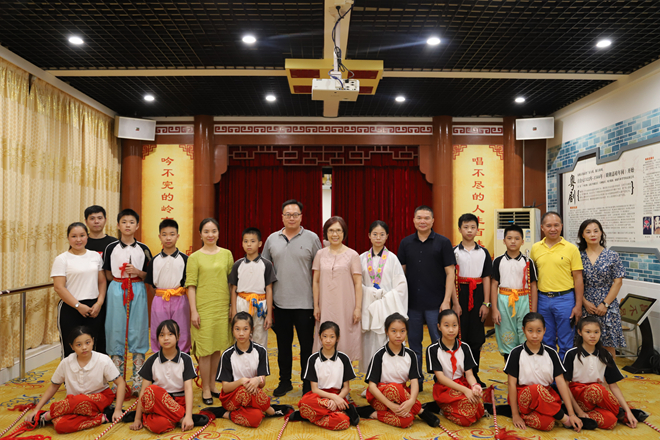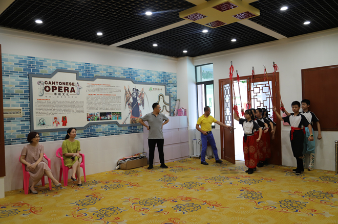 隨后,三人參觀了我校的粵劇展覽室,了解華東小學粵劇項目的不斷發展、不斷壯大的成長歷程,并對學校和孩子們取得的成績贊不絕口。作為華東小學粵劇少兒藝術團的名譽團長,倪惠英女士和李漢銓先生還為學校在這個項目的發展指明新的方向。
