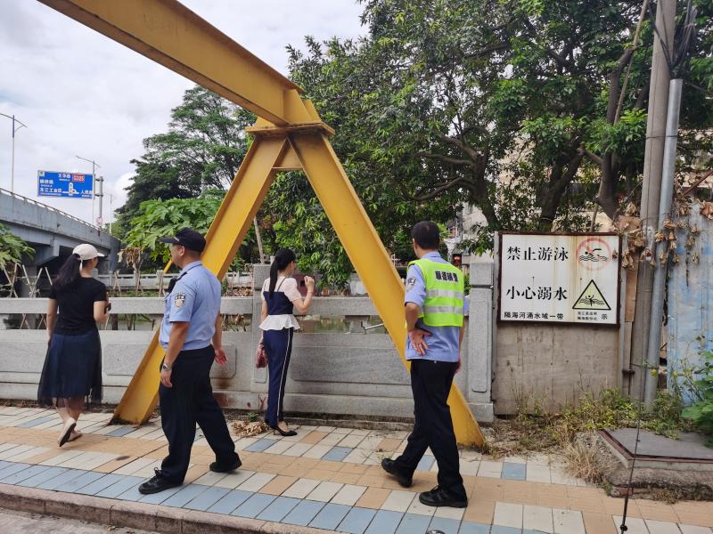 首先排查學校周邊的大小河涌、池塘、魚塘等進行監督檢查。重點檢查每一處水域是否設置有清晰的安全警示編號標識,包括水域信息、警示信息等,對巡查中發現沒有設置安全警示標識的,立即作為線索上報。對發現中小學生玩水、市民游泳等情況,及時做好宣傳引導和勸離工作。