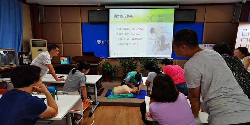 此次培訓分為兩部分:第一部分為《從壓力中營救自己》心理健康講座,由譚好欣醫生給師生上了一節心理健康教育課,教會我們如何面對工作、學習和生活中來自不同的各種壓力;如何釋放各種各樣的壓力;最后如何把壓力轉變為成功的動力。第二部分為學習心肺復蘇知識培訓,教會老師們在生活中遇到突發狀況進行人工徒手心肺復蘇等內容,結合實際救護技巧進行詳細講解,并現場進行操作展示,學員們對此表現出強烈的求知欲,在醫生的指導下紛紛參與實操演練,力求掌握胸外心臟按壓這一急救方法和注意事項。
