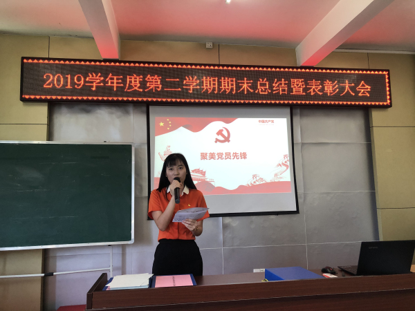 黨支部書記鄒雪琴在張老師的介紹下緩緩走到臺前,她講道,本學期,全校師生凝心聚力、砥礪前行,無論是延期開學期間還是正式復學之后的學期要點工作,都有條不紊,落實到位,成效顯著。她更想對在此期間付出了辛勤與汗水的教師們說一聲謝謝。