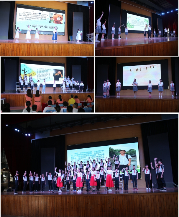 伴隨著收獲的喜悅,以“感恩有您――回憶童年――童夢起航”為線索的“童暢畢業秀”精彩綻放。《感恩的心》手語舞、《感恩母校》詩歌朗誦、《少年》班級大合唱、《芒種》歌舞等,六年級各班精心準備的節目讓我們看到了“至誠至真”的童心少年風采,演繹著一份最美的記憶――在童心城小遇見最好的自己!