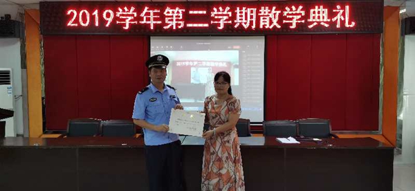 廖校長為駐校法制黎日良校長頒發(fā)證書