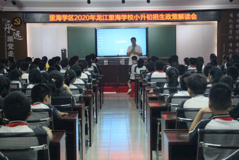 首先,由里海學校小學部主管招生的行政潘小敏副校長詳細為學生們解讀了2020年小升初招生政策。接著,由里海學區的李金龍校長親自為學生宣講里海學校目前的招生情況及里海學校的發展前景,讓學生對龍江里海學校有了更加清晰和全面的了解。