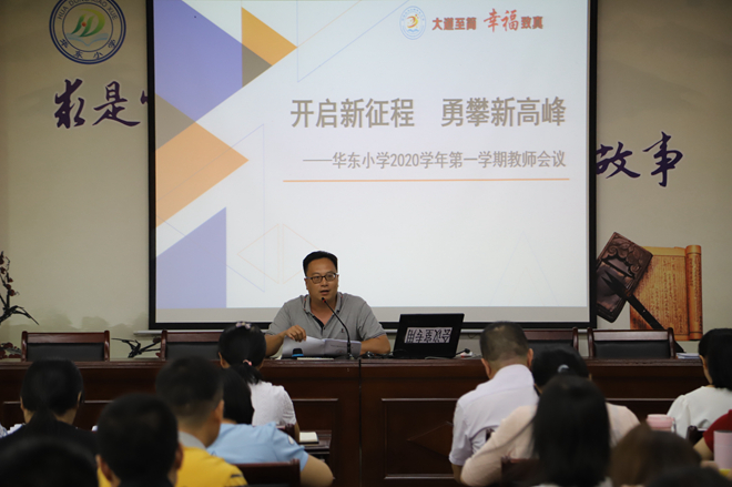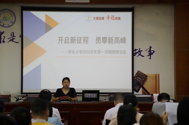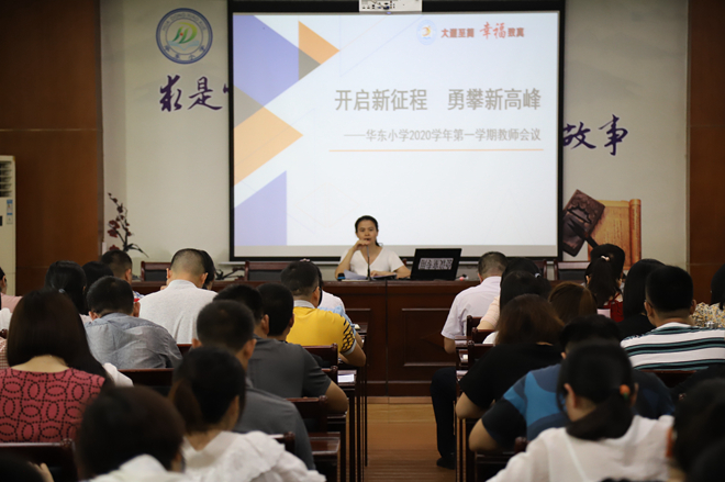 繽紛的九月,伴著夏季的最后一絲熱氣,我們又迎來了開學季。告別長假,新學期,開啟新征程。為了確保開學工作的順利進行,8月30日上午,華東小學召開新學期全體教職工會議。會議由何慧榮副校長主持。